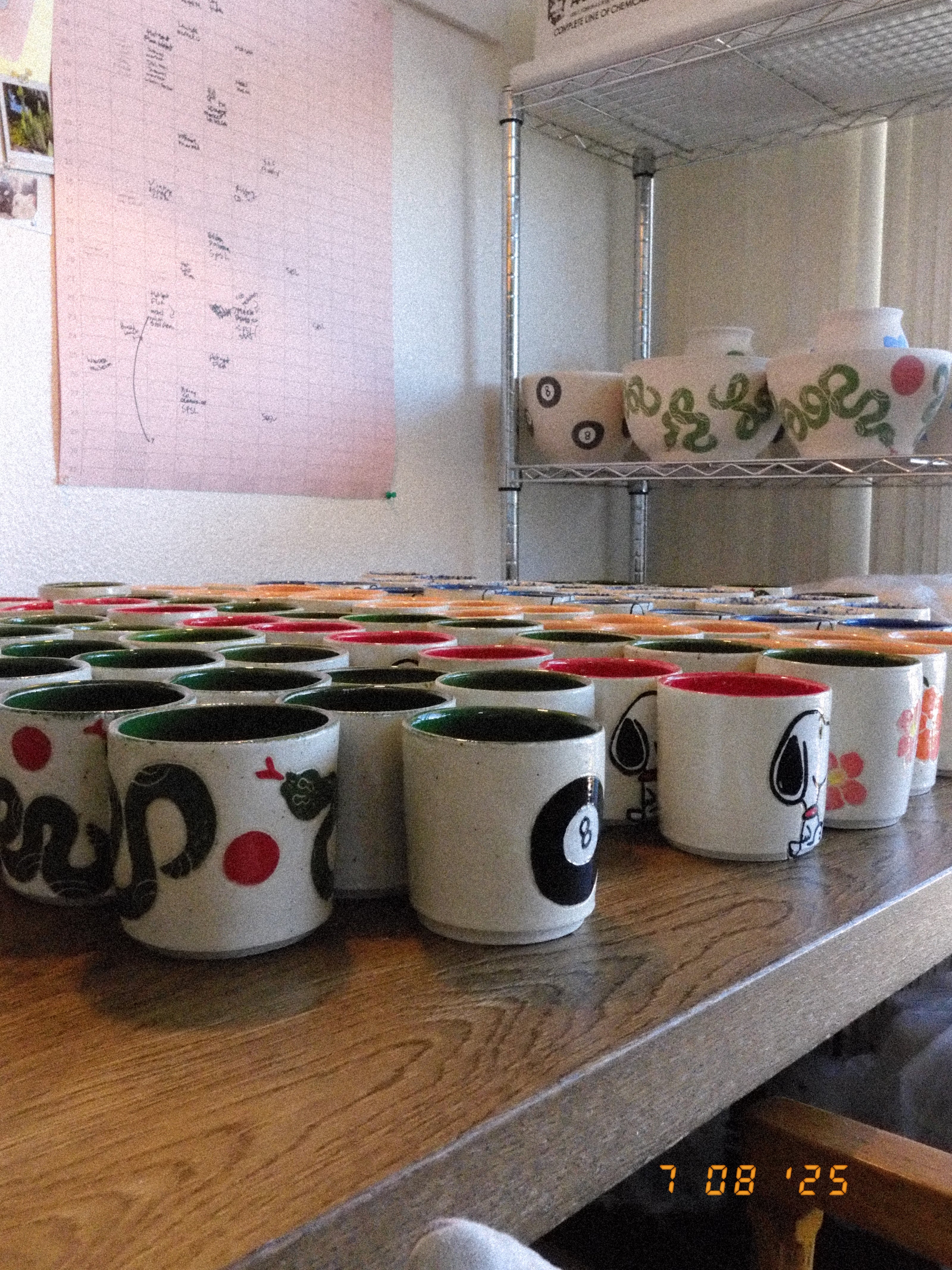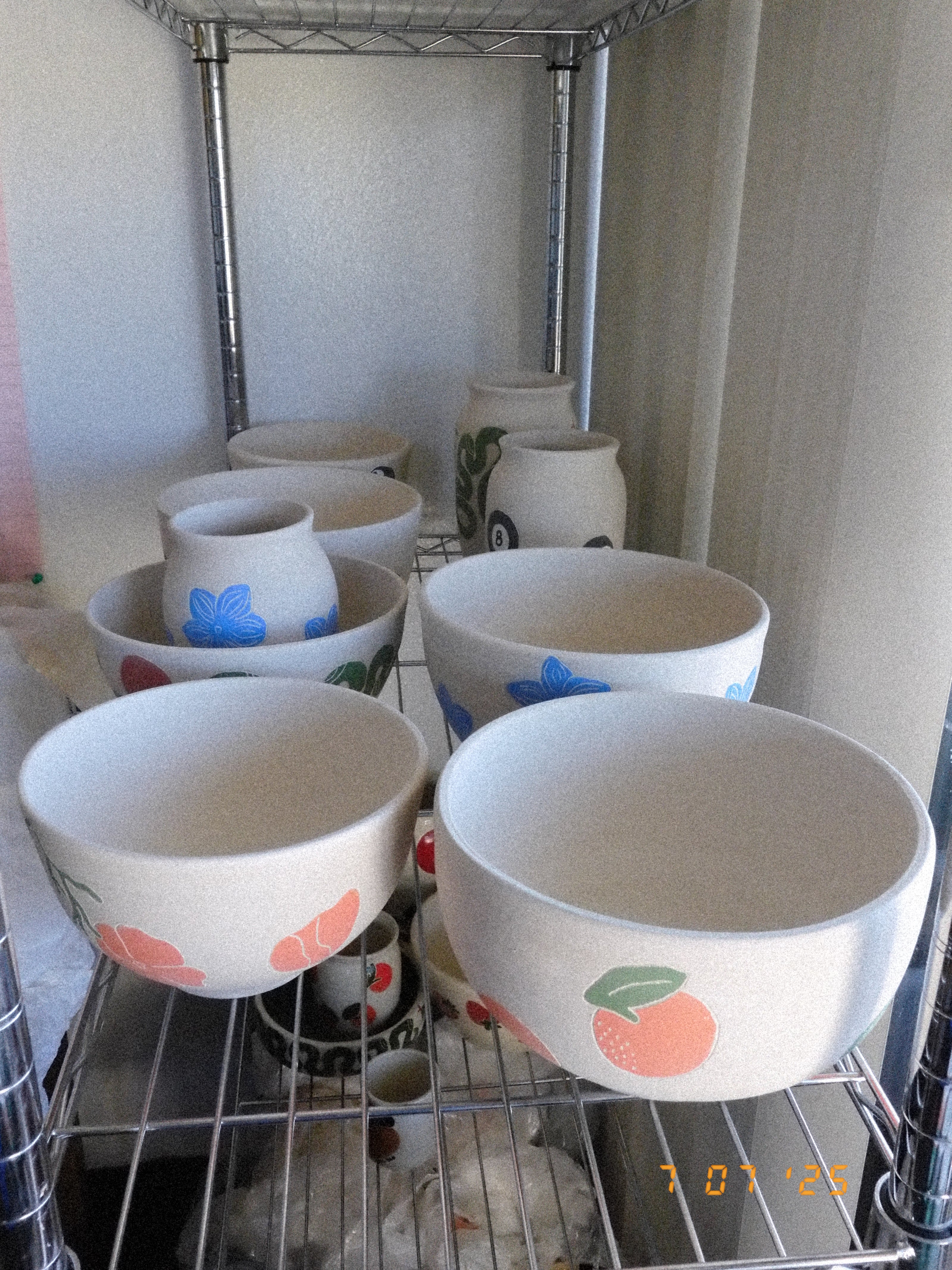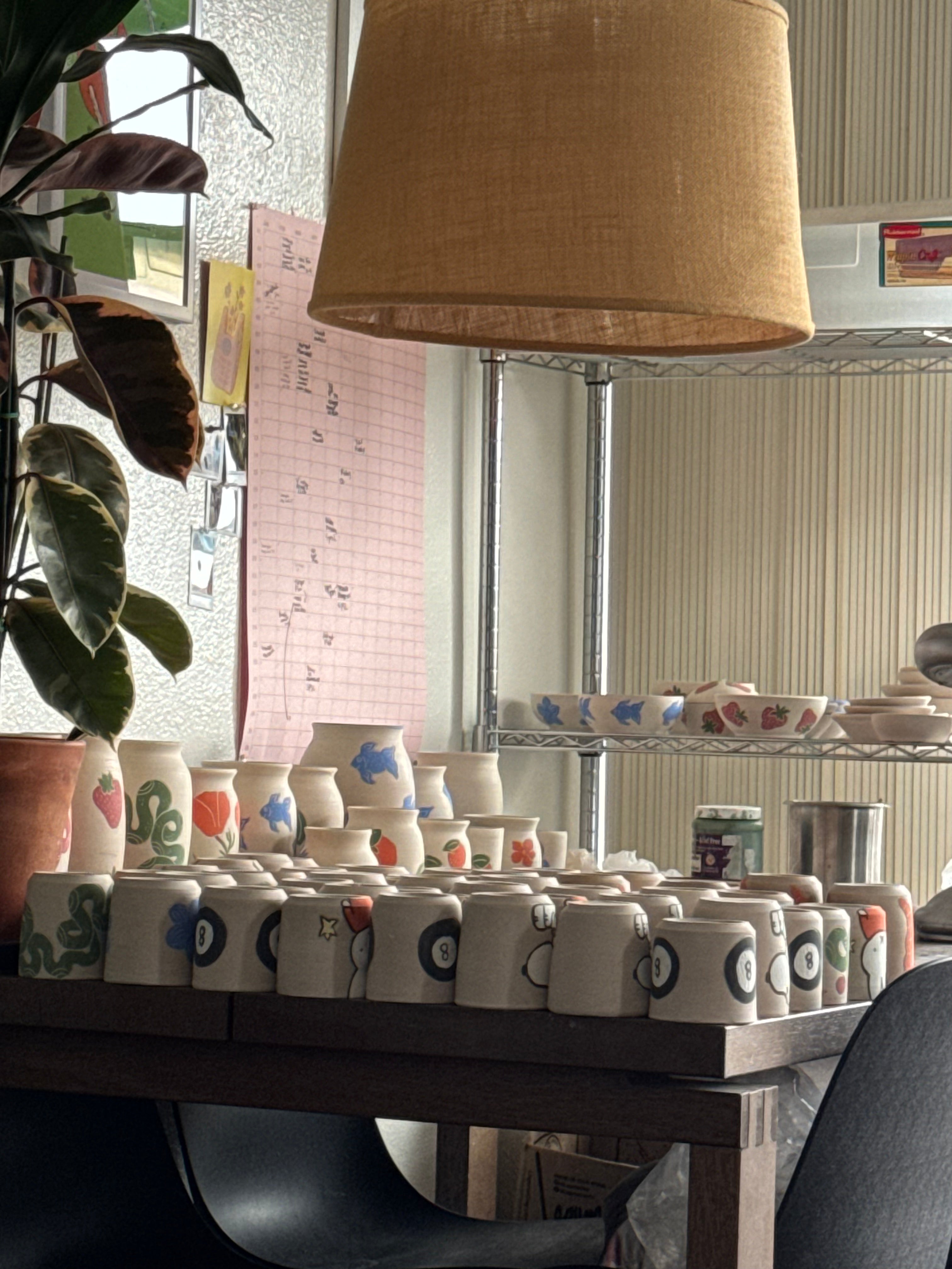 I first was introduced to pottery when my goal was to find a hobby, besides shopping.. After my first class i became absolutely obsessed, and started to try to find my style. i really love throwing a piece on the wheel, and getting the chance to paint fun/silly things on them.