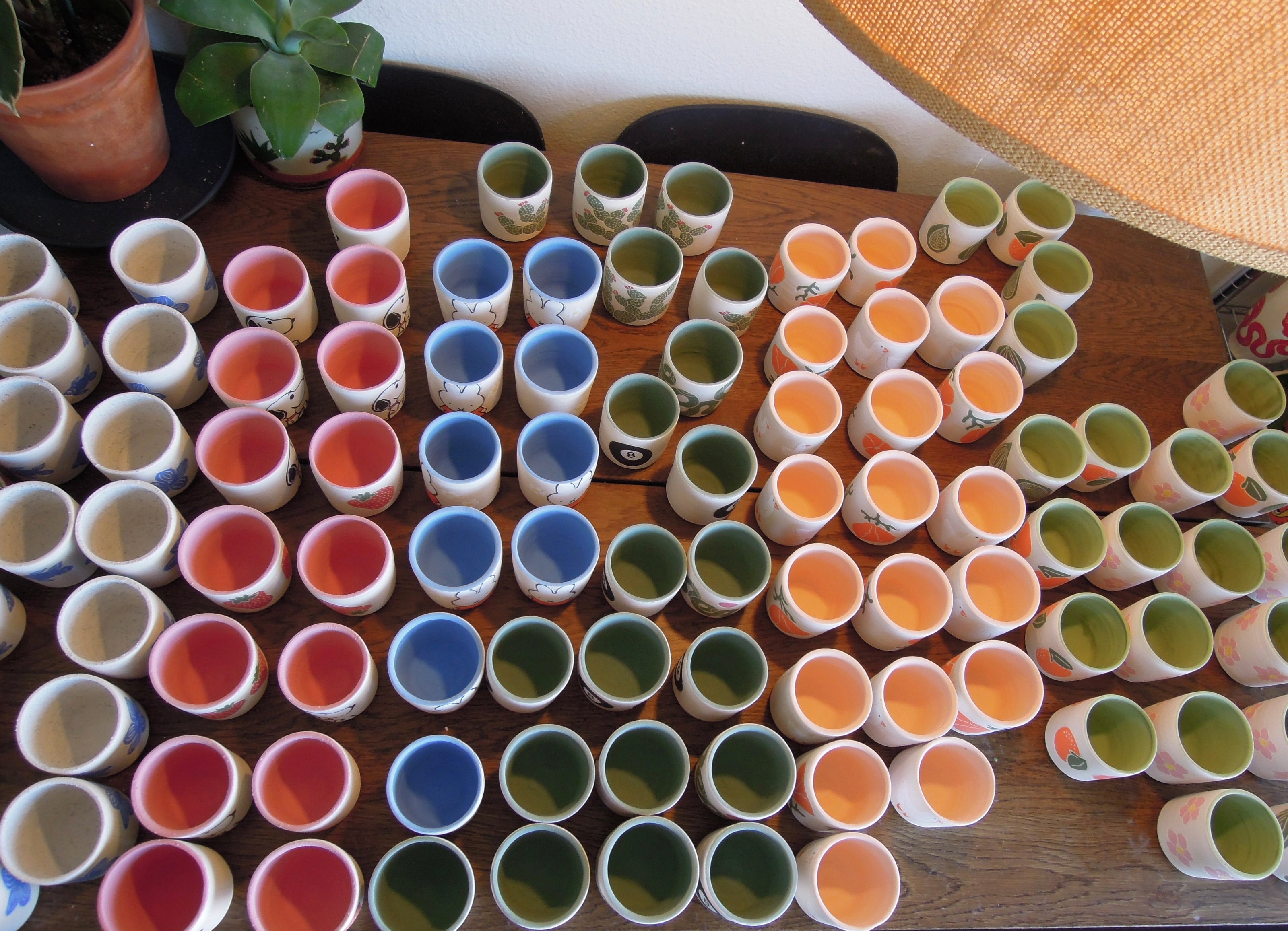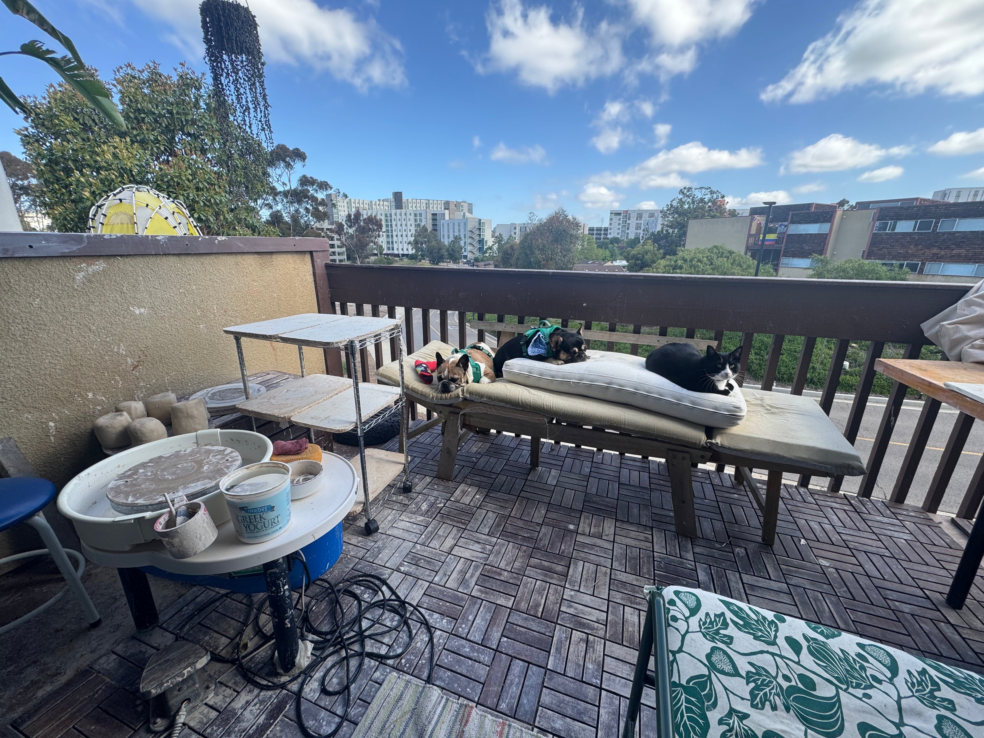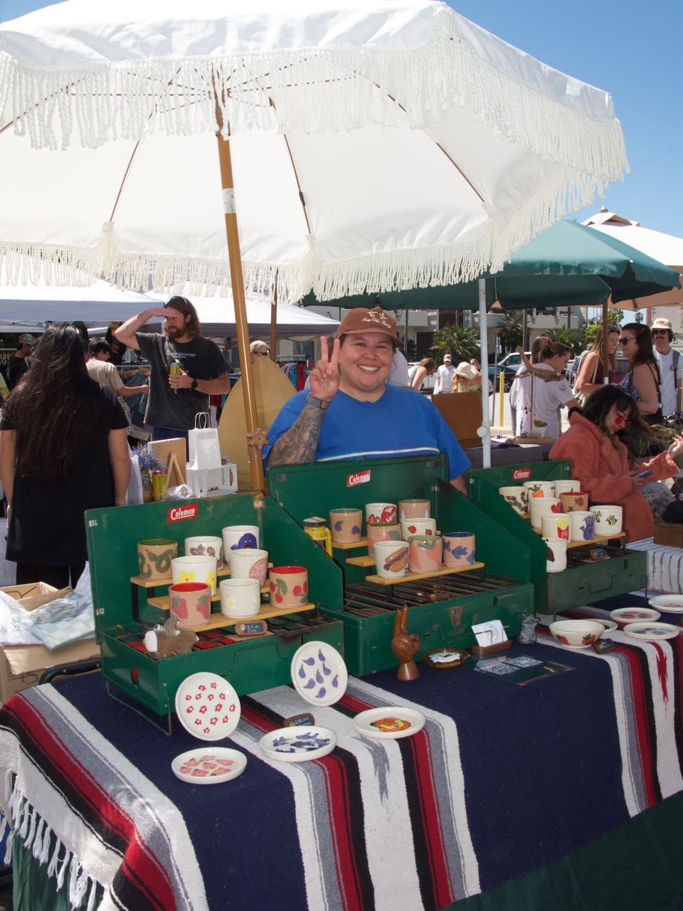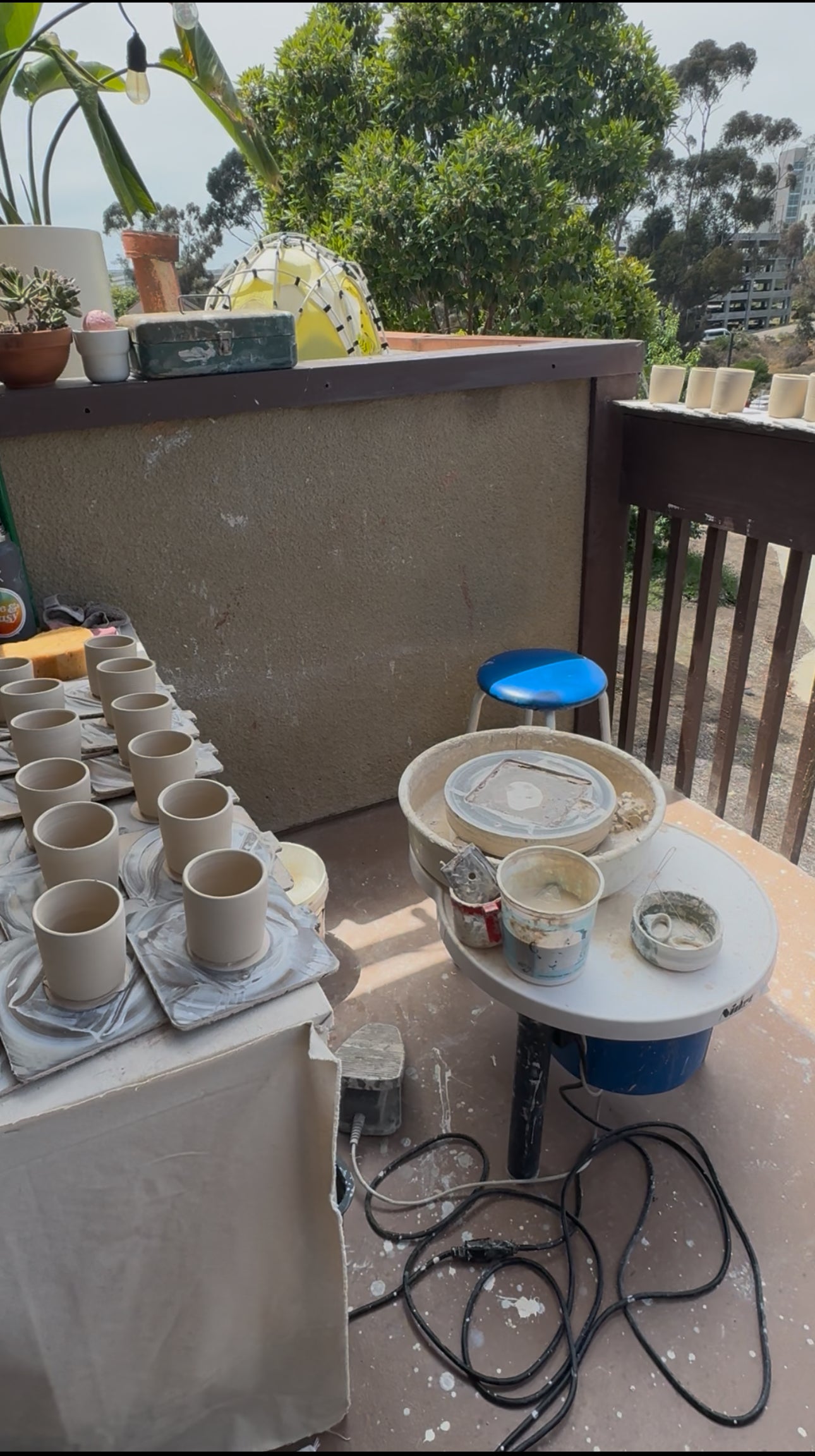 My name is Luli, and I'm the person behind Más o Menos Pottery. I'm a local San Diegan, and every piece you see is lovingly wheel thrown, painted, and carved from my apartment that i share with my girlfriend and 2 french bulldogs.